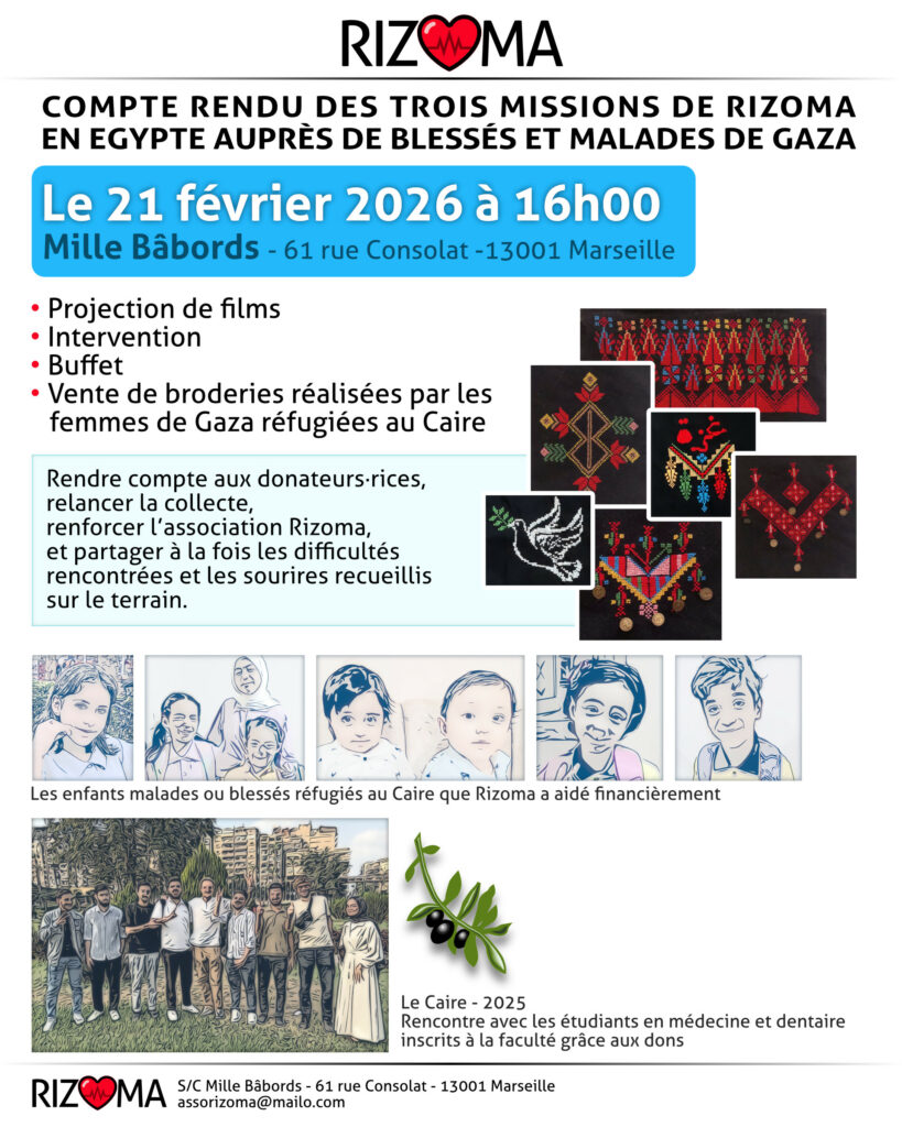 Sur l’antenne de RADIO GALERE-88.4, dans l’émission du mercredi « Une heure en Palestine », Sabine et Régine témoignaient, le 18 février, de leur dernière mission au Caire à la rencontre des étudiant·es gazaouis en médecine et dentaire, des femmes évacuées pour soins médicaux ou accompagnant des enfants en soins.